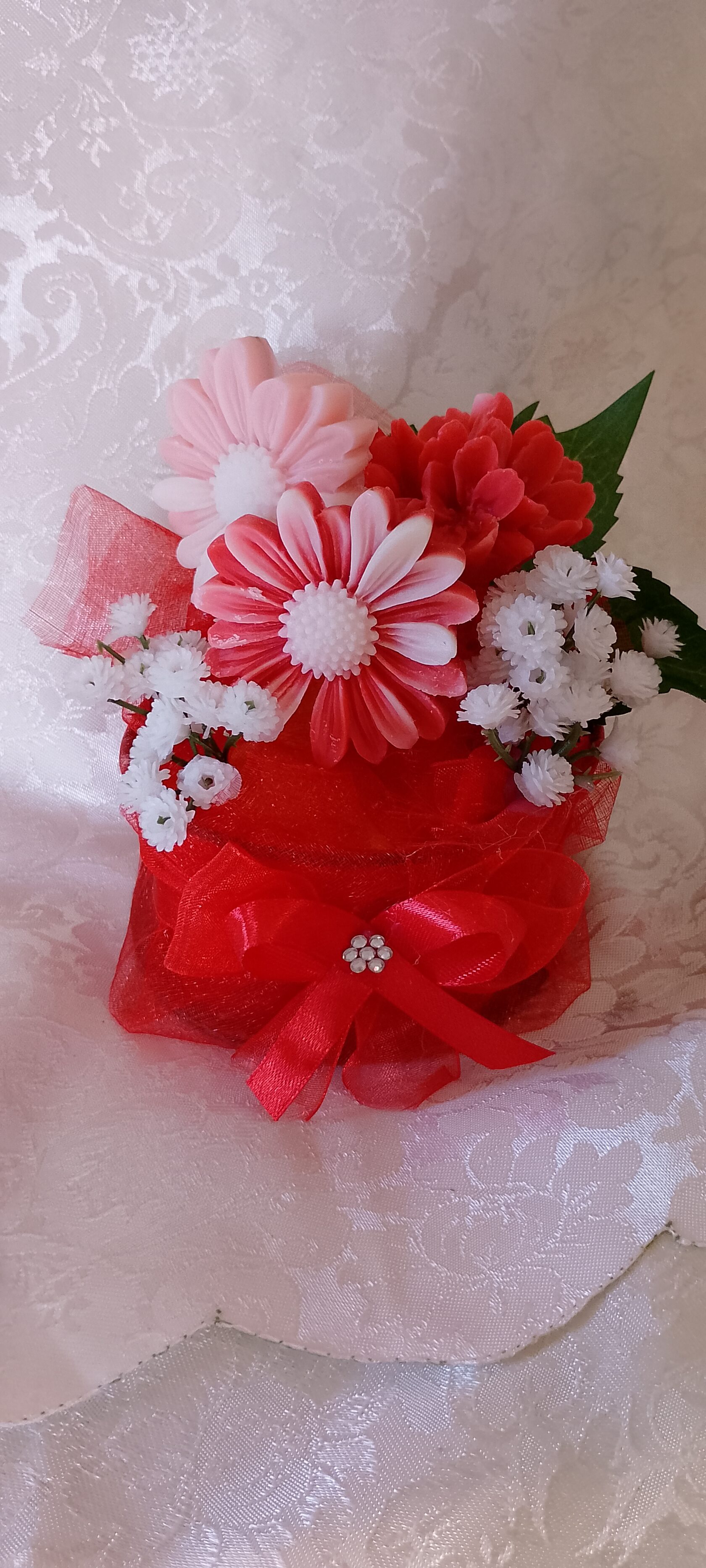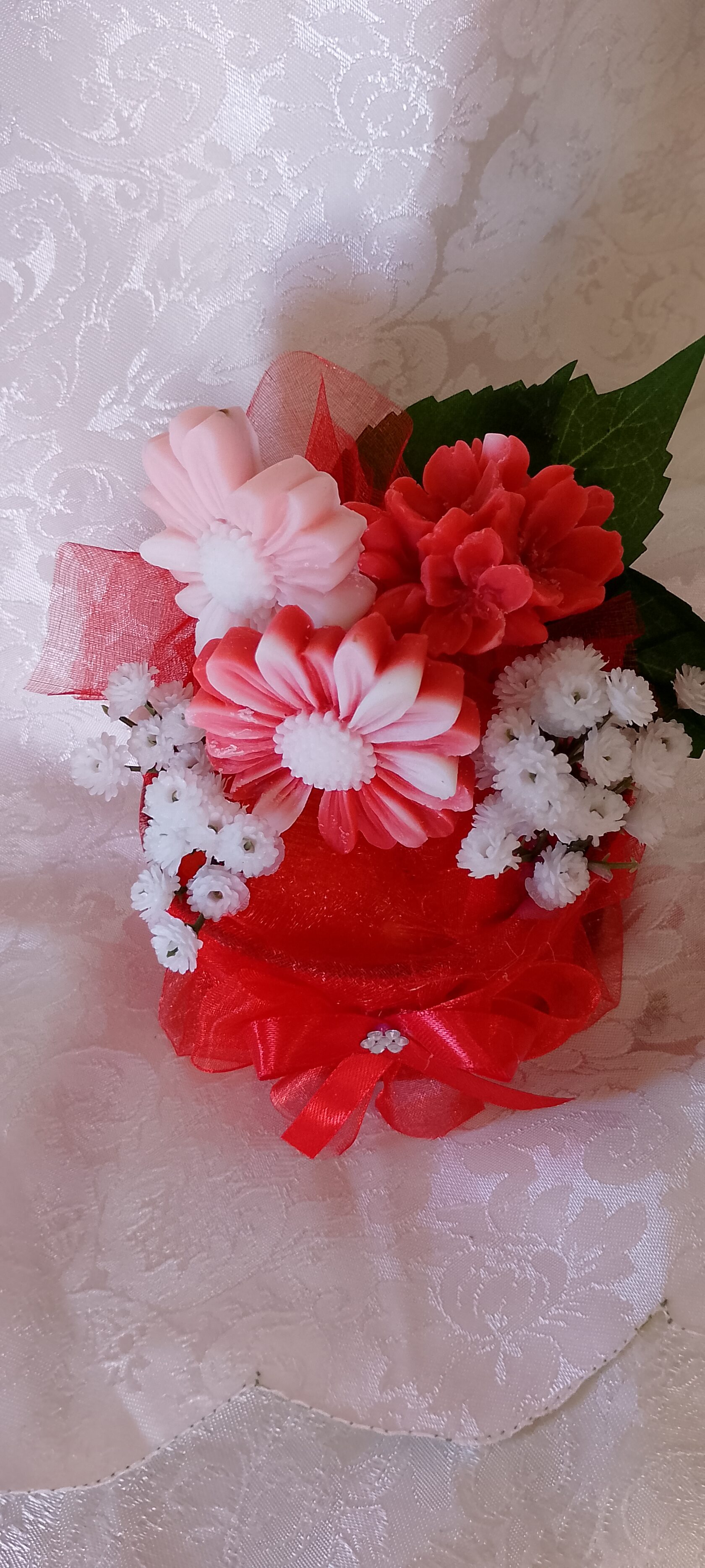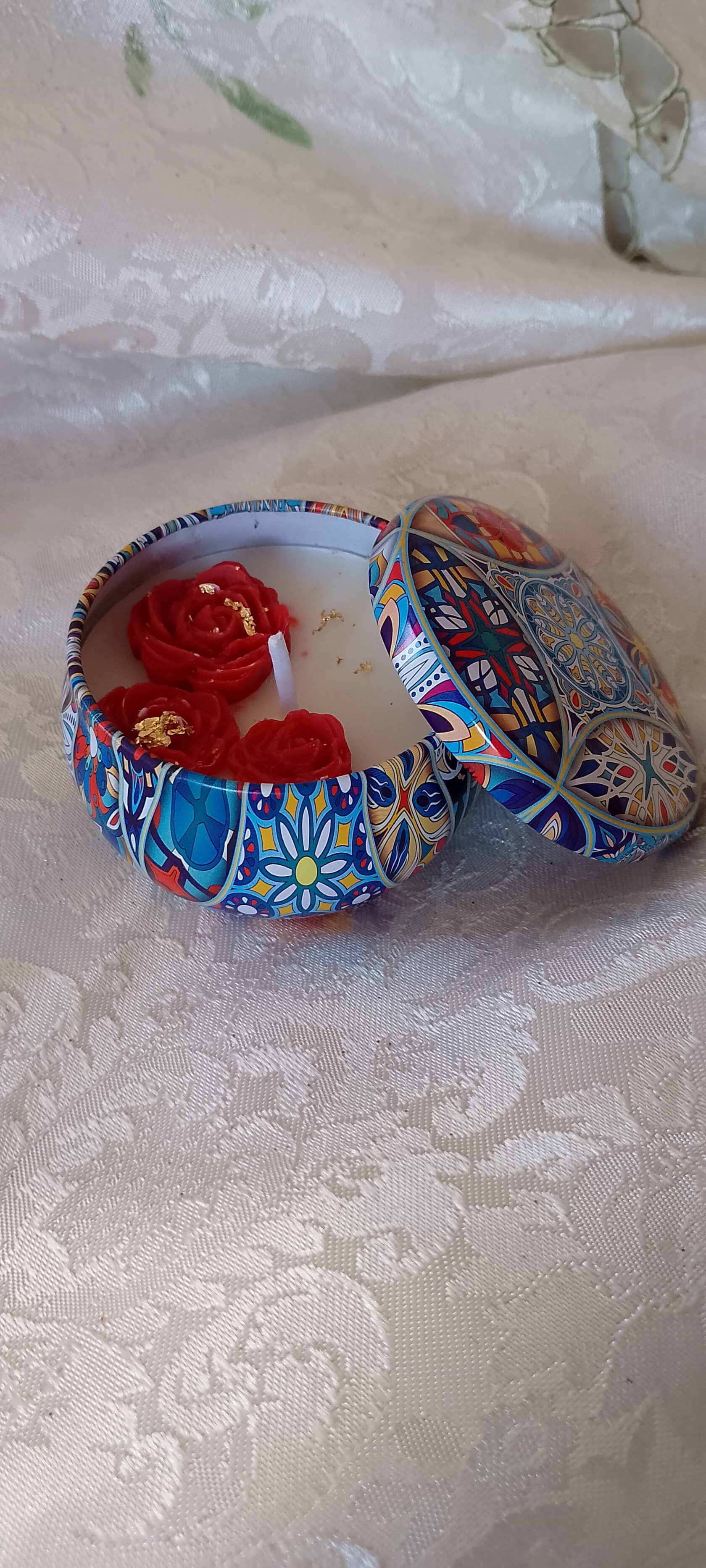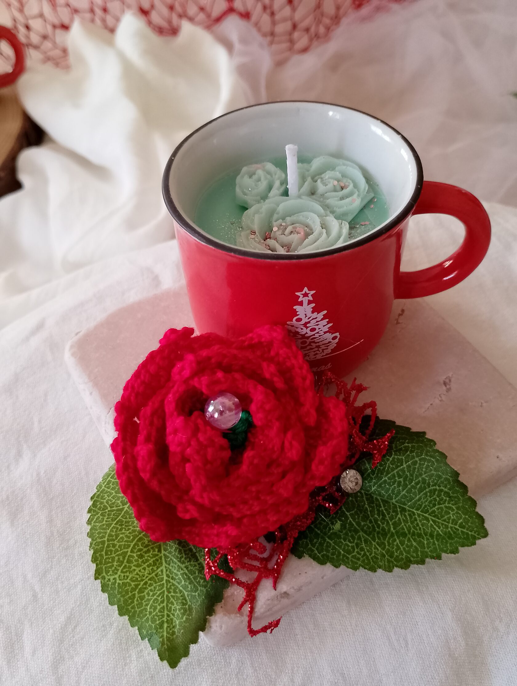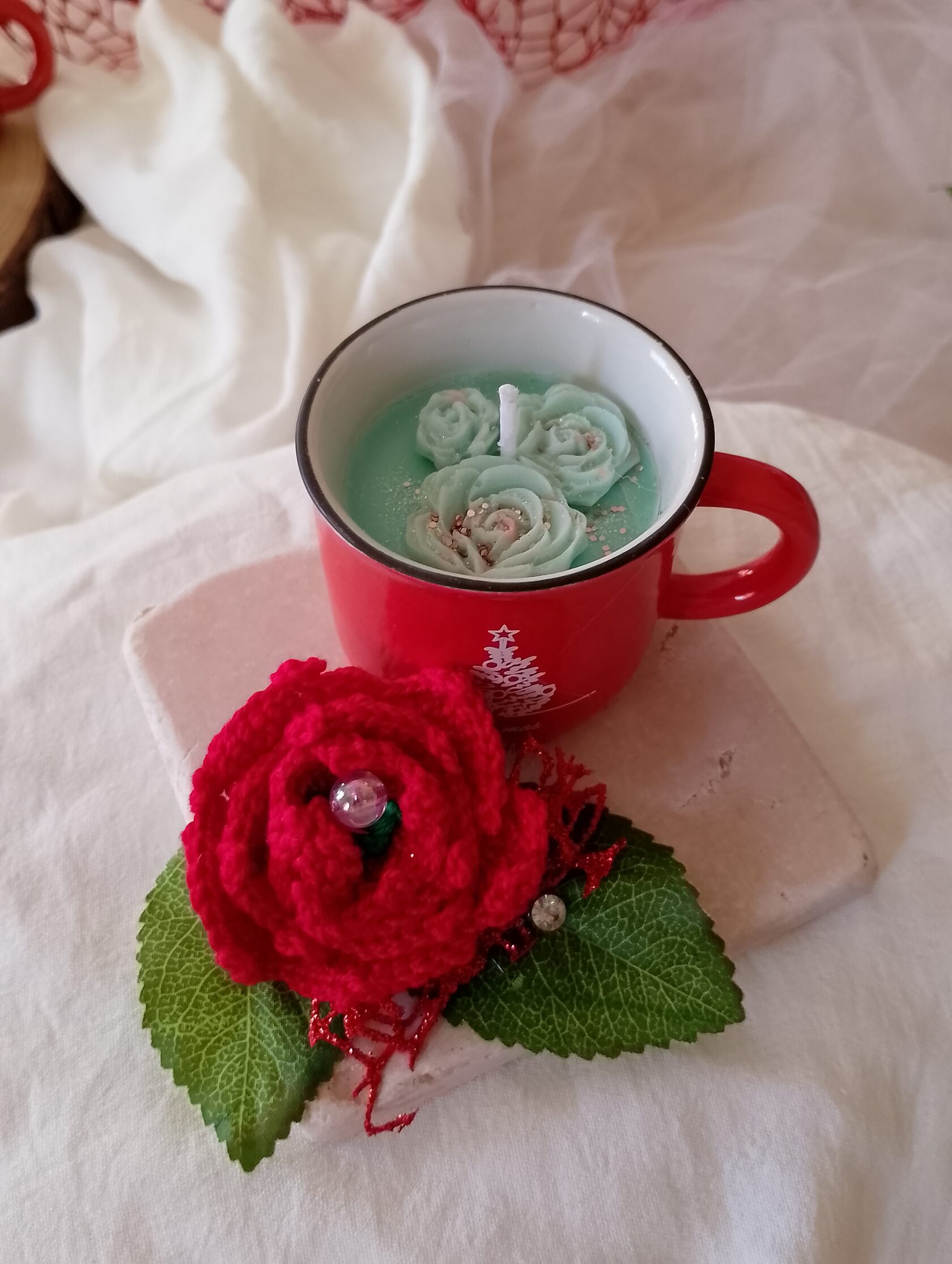 2CANDELE PEONIA 1 TAGLIERE CON DUE CANDELE IN TAZZINA 1 CANDELA PETALI DI ROSA 1CANDELA PETALI DI ROSA CON TRONCHETTO. 1 CANDELA PIGNA. 1 CANDELA IN CONTENITORE. 1 PORTACHIAVI LAVORATO ALL UNCINETTO 1 BORSETTINA PORTA CANDELA 1 CENTRO SOTTOPIATTO LAVORATO ALL UNCINETTO